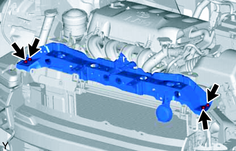 (d) Déposer les 4 boulons et le sous-ensemble de support de radiateur. |
