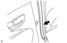 4. DEPOSER LE BOURRELET D'HABILLAGE D'OUVERTURE DE PORTE AVANT (a) Déposer le bourrelet d'habillage d'ouverture de porte avant. |