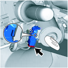 (c) A l'aide d'un tournevis dont la pointe a été préalablement entourée de ruban adhésif, libérer les 2 griffes et déposer le contacteur d'avertissement de déverrouillage.