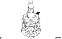 7. DEPOSER LE PIGNON DE 2EME (a) A l'aide du SST et d'une presse, déposer le pignon mené de 3ème ainsi que le pignon de 2ème de l'arbre de sortie. SST: 09950-00020 |