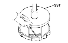 (b) Placer le SST sur le sous-ensemble de ressort de rappel de piston de 2ème frein et comprimer le sous-ensemble de ressort de rappel de piston de 2ème frein à l'aide d'une presse. SST: 09387-00060 |