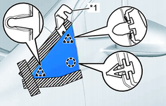 (a) Appliquer du ruban adhésif de protection sur la carrosserie du véhicule dans la zone autour du cache supérieur de montant avant. Texte du schéma
