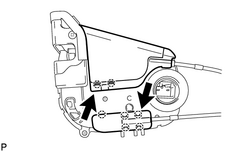(d) Débrancher le câble de commande à distance de verrouillage de porte arrière et le câble de verrouillage intérieur de porte arrière. |