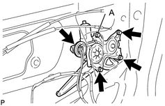 19. DEPOSER L'ENSEMBLE DE MOTEUR DE LEVE-VITRE ELECTRIQUE ARRIERE (avec vitres électriques) (a) A l'aide d'une clé à douille "TORX" T25, déposer les 3 vis et le moteur de lève-vitre électrique. |